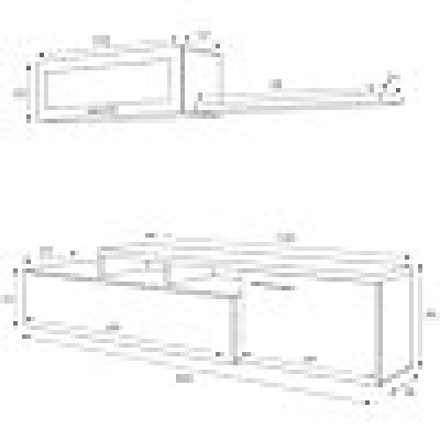 • Dimensiones en CM - TV Puerta: Longitud: 200 Ancho: 41 Altura: 44 - Unidad de pared: 105x32h32 - estante: 95x21h3