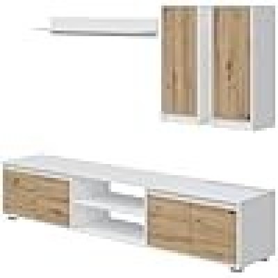 • STRUTTURA E UTILIZZO - Mobile TV per salotto composto da una base porta televisione a quattro ante battenti e due ripiani a vista centrali, due moduli sospesi e una mensola - La scelta dei vari mobili che compongono questa composizione da salotto rende il design di questo articolo d'arredamento moderno, funzionale e salvaspazio - Oltre al posizionamento della TV potrete personalizzare il ripiano e la mensola con i vostri soprammobili preferiti che rimarranno in esposizione sugli scaffali - Lo spazio all'interno delle ante è perfetto per riporre i vostri libri, documenti, oggetti decorativi o stoviglie in modo ordinato e discreto