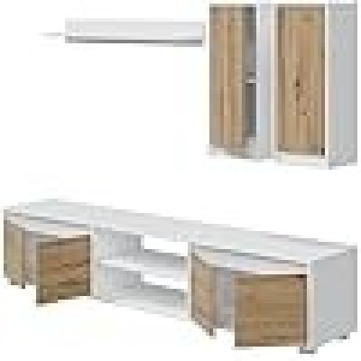 • Pared equipada - sala de estar, sala de estar multipropósito, composición para la sala de estar moderna, 200x40h14 cm, blanco y roble