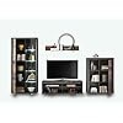 El gabinete de TV consiste en un centro de atención que esconde 2 habitaciones y dos nichos abiertos sobre el cajón. El armario se divide en dos compartimentos, a la izquierda con la puerta de madera y a la derecha, una puerta de vidrio siempre se balancea; Cada parte contiene 4 estantes. El casillero más pequeño, también se divide en dos partes, a la derecha con la puerta de la columpio de madera, mientras que a la izquierda está abierta; Cada compartimento tiene 2 estantes.