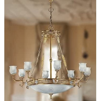 Classic 8+4 luces en latón de oro antiguo con altavoces de vidrio satinado grabados PR 6566/8