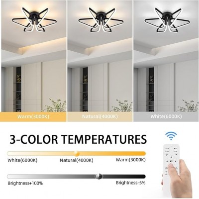Techo LED de techo de estilo moderno, candelabro de dormitorio oscuro a dimosmo con control remoto,