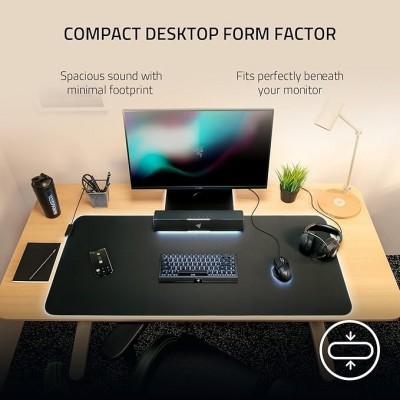 • Factor de escritorio compacto para un sonido espacioso y el más mínimo huella: solo 400 mm de largo, la barra de sonido más compacta de nuestra gama Leviathan V2 se puede colocar debajo del monitor para mantener su escritorio limpio, y ofrece un rango de sonido extendido e intenso