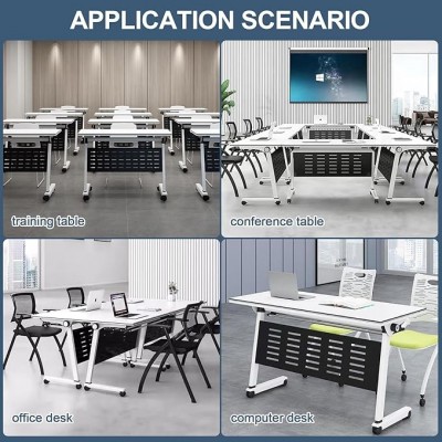 • Tabla de conferencia Combinada libremente: nuestra tabla de conferencias plegable se puede mover y combinarse libremente, rompiendo el espacio de oficinas tradicional. Fácil de usar, puede juntar rápidamente una variedad de combinaciones para controlar fácilmente varios escenarios para satisfacer sus necesidades. Se puede utilizar como mesa de conferencias, mesa de capacitación, mesa de reuniones, mesa de recepción, mesa de enseñanza, mesa de oficina