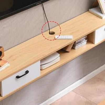 página de título > Gabinete de televisión flotante genérico, hecho de madera maciza para pared, con orificios para cabl
